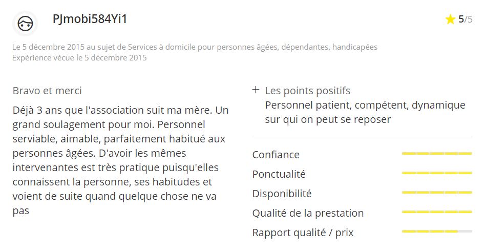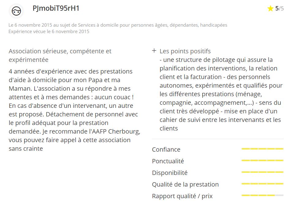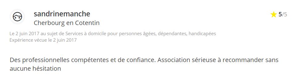 Votre avis compte beaucoup pour nous, afin que nous puissions continuer de nous améliorer au fil des années. Ces personnes ont eu recours aux services de l’Aide à Domicile de Cherbourg et voici ce qu’ils en ont pensé :